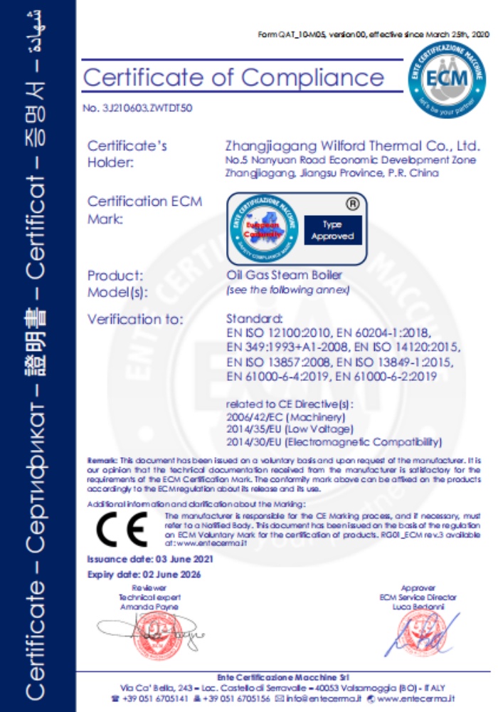 張家港威孚熱能股份有限公司,擁有中國(guó)、ASME、CE的制造許可資質(zhì),從事中小型蒸汽鍋爐、熱水鍋爐、導(dǎo)熱油爐、壓力容器的設(shè)計(jì)、生產(chǎn)、銷(xiāo)售、服務(wù)已有二十多年的歷史。公司產(chǎn)品已成為食品、服裝、醫(yī)療、制藥、化工、建材加工行業(yè)的基礎(chǔ)配套工業(yè)產(chǎn)品。產(chǎn)品遠(yuǎn)銷(xiāo)歐洲、北美、非洲、東南亞、中東等七十多個(gè)國(guó)家和地區(qū)。